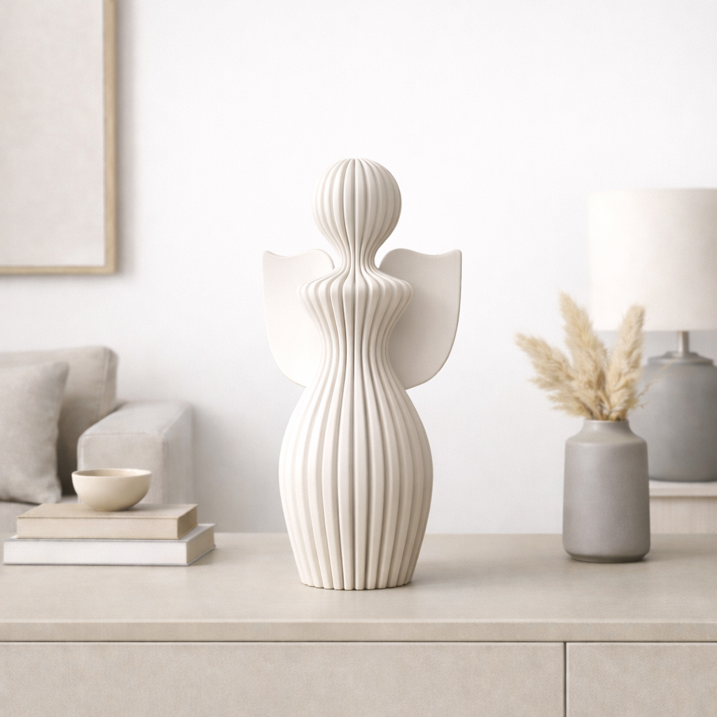 Die Engelsfigur steht für klare Formensprache und ruhige Eleganz. Die feinen, fliessenden Linien geben ihr eine moderne Struktur, während die sanfte Silhouette die Idee eines schützenden Engels auf eine zurückhaltende, stilvolle Art zeigt. Als Weihnachtsdekoration bringt sie Ruhe in den Raum und ist gleichzeitig ein schönes Geschenk, das lange Freude macht. Die Figur ist 130 mm hoch.